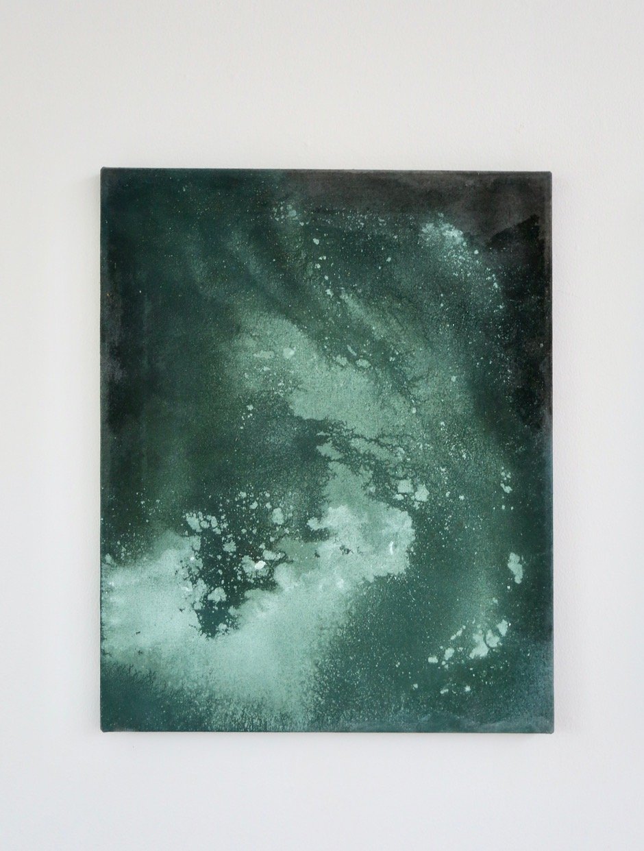 Jeg maler motivet op, og i de næste faser bliver de bevidst gjort mere abstrakte, mindre genkendelige. I den sidste behandling af værkerne opstår der altid et fysisk mellemværende mellem maleriet og mig.